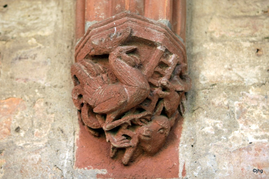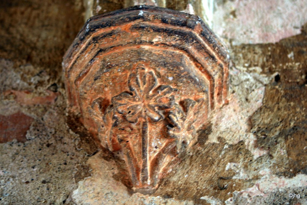Demnach, so las ich weiter, begegnet man im Kloster Chorin den Pflanzen Mariens in den Ornamenten der Friese, Kapitelle, Fenster und Fassaden: dem Weinblatt, der Rose, dem Beifuß, dem Eichenblatt, dem Hahnenfuß, der Erdbeere und der Weizenähre. Auch Klee und Walnuss sollen dazugehören.